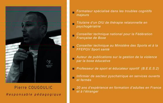 Pierre Cougoulic, infirmier de secteur Psychiatrique, professeur de sport et responsable adjoint des formations auprès de la Fédération Française de Boxe encadre l'ensemble des formations.